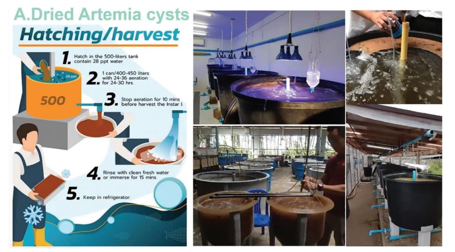 - Xây dựng các hướng dẫn cải tiến về sản xuất và sử dụng Artemia an toàn sinh học trong các trại giống, bao gồm việc cập nhật sổ tay hướng dẫn về Artemia của FAO và tổ chức các khóa đào tạo về Artemia cho các trại giống địa phương, để phổ biến các thực hành tốt và tạo điều kiện thuận lợi cho việc áp dụng các quy trình tiêu chuẩn hóa.