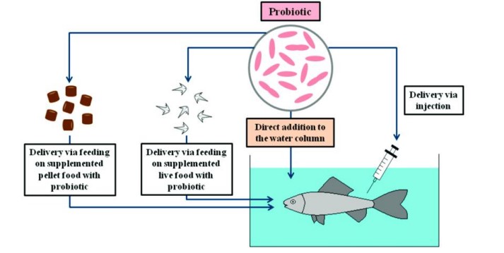Among all the routes of probiotics administration, supplementation as feed additives is the most commonly used in aquaculture but application as water additives is the most practically applicable method. The administration via feeding have problem during the early larvae stages due to immature digestive tracts of fish during the larvae stage of development and injection also results in high stress in larvae fish. Hence, addition of probiotics directly in the rearing water is practically applicable in all the stages.