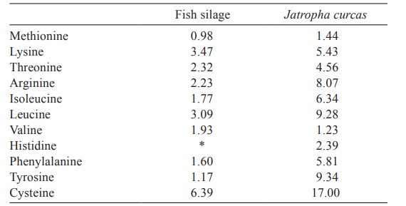 Sự kết hợp giữa 18,75% thức ăn ủ chua cá/39,75% bột hạt Jathropa curcas làm nguồn protein là một giải pháp thay thế tiềm năng để thay thế hiệu quả bột cá trong khẩu phần ăn thực tế cho L. vannamei. Điều này xảy ra ở các độ tuổi được nghiên cứu trong cả điều kiện phòng thí nghiệm và ao nuôi với khẩu phần ăn duy trì hiệu suất tăng trưởng tôm hợp lý.