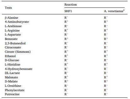 aDữ liệu cho A. venetianus trước đây được báo cáo bởi Vaneechoutte và cộng sự (2009) và Malhotra và cộng sự (2012); R+: phản ứng tích cực; R : phản ứng tiêu cực.