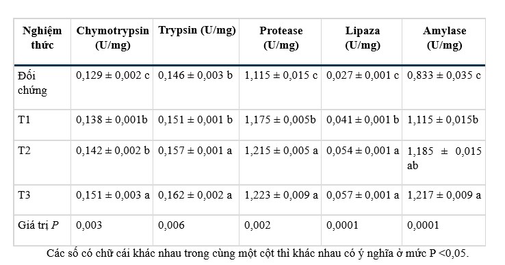 3.2. Hoạt tính của enzyme tiêu hóa
