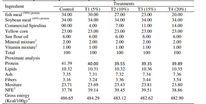 Tảo Spirulina (Arthrospira platensis) được sử dụng trong nghiên cứu này được lấy từ thị trường địa phương (Alhlw, Co. for bios production-Zagazik, Egypt). Phân tích hóa học của Spirulina (Arthrospira platensis) được thể hiện trong Bảng (2).