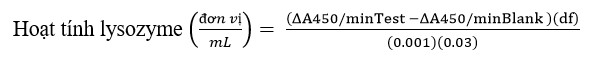 Việc đo hoạt tính lysozyme được thực hiện bằng bộ phát hiện lysozyme (Sigma-Aldrich, Cat. no. LY0100) theo hướng dẫn của nhà sản xuất. Kết quả hoạt tính của lysozyme được xác định bằng sự phân giải tế bào Micrococcus lysodeikticus. Độ hấp thụ được đo ở bước sóng 450nm bằng máy quang phổ tử ngoại/nhìn thấy (Perkin Elmer, Lambda XLS, USA).