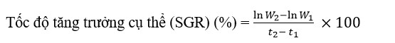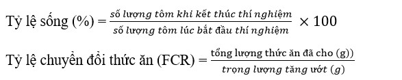 Trong đó: W là trọng lượng tôm (g) và L là tổng chiều dài tôm (cm).