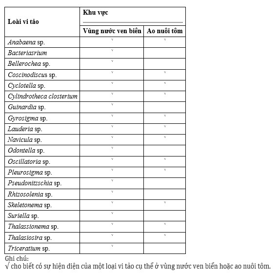 Bảng 3: Các loài vi tảo được tìm thấy ở vùng nước ven biển và ao nuôi tôm.