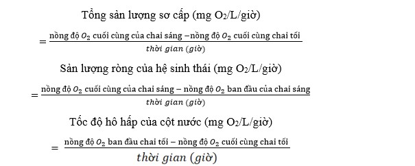Thuật ngữ hoạt động của vi sinh vật được sử dụng trong nghiên cứu này do Bratvold và Browdy (1998) đề xuất và bao gồm các quá trình vi sinh vật sau: sản xuất hệ sinh thái ròng (NEP), hoạt động chung của vi sinh vật hoặc tốc độ hô hấp của cột nước và quá trình nitrat hóa. Ở đây, tổng sản lượng sơ cấp (GPP) cũng được tính toán. NEP, GPP và sự hô hấp của cột nước và của tảo bám vào chất nền được đo bằng phương pháp chai sáng-tối (Strickland, 1960), và các tính toán được thực hiện theo Dodds và Cole (2007):