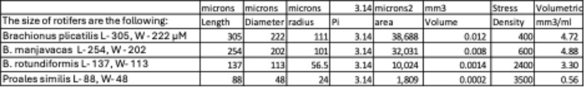 Chúng tôi bắt đầu Chương 1 với cụm từ “cắn những gì bạn có thể nhai”. Sau một vụ tai nạn khác, chúng tôi tự hỏi liệu luân trùng chết vì chất lượng nước hay do một nguyên nhân nào khác, chẳng hạn như “chết đói”. Các tác giả của hướng dẫn này có quyền truy cập vào phòng thí nghiệm gốm sứ được trang bị để đo kích thước hạt từ micron đến <100 nanomet. Chúng tôi sử dụng phòng thí nghiệm để đo sự phân bổ kích thước hạt của thức ăn làm từ tảo. Hơn 90% các hạt có kích thước trên 10 µM, 80% trên 20 µM và nhiều hạt có kích thước trên 50 µM.