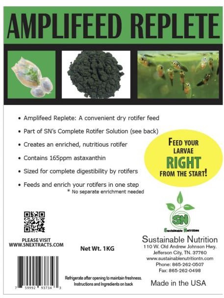 Luân trùng được cho ăn Amplifeed Replete bơi nhanh hơn và sinh sản nhiều hơn. Động vật ăn luân trùng này phát triển nhanh hơn và có hệ thống miễn dịch mạnh hơn, dẫn đến tỷ lệ sống của ấu trùng tăng lên. Luân trùng cũng có màu sắc đậm hơn giúp động vật săn mồi dễ dàng nhìn thấy và bắt mồi hơn.