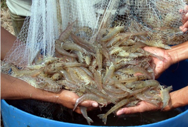 Tôm kích cỡ đều và sạch khi thu hoạch, Indonesia.