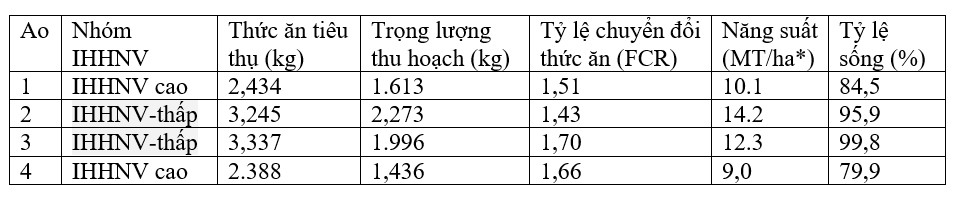 Năng suất ao và sự khác biệt về tỷ lệ sống