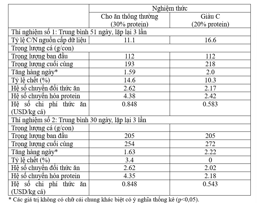 và tỷ lệ C/N ban đầu (10,75 trong thức ăn 30% protein) nên được nâng lên 15,75.