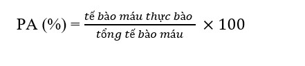 20 µL huyền phù vi khuẩn V. parahaemolyticus (2 × 106 cfu/ ml) được tiêm vào xoang bụng. Tôm sau khi tiêm được nuôi trong bể riêng chứa 40L nước biển (20‰) cho 2 hat 27 ± 1°C. Hemolymph (100 μl) từ 6 con tôm đã được rút ra và trộn với 900 μl dung dịch chống đông máu. 100 µL của mẫu hemolymp đã pha loãng được trộn với 100 μl paraformaldehyde 0,1% và ủ trong 30 phút ở 4°C để cố định các tế bào máu. Sau đó, 50 μl huyền phù được trải trên một phiến kính. Phiến kính được đặt trong máy ly tâm cytospin và ly tâm ở 113 × g trong 3 phút. Phiến kính sau đó được làm khô trong không khí, nhuộm màu Diff-Quick và quan sát bằng kính hiển vi ánh sáng. 200 tế bào máu đã được đếm. Hoạt động thực bào (PA) được thể hiện như sau: