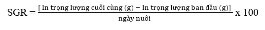 Không có sự khác biệt đáng kể nào được tìm thấy trong các biến số chất lượng nước cơ bản giữa các nghiệm thức (Bảng 1). Nhiệt độ trung bình dao động từ 27,7 đến 28,0°C và lượng oxy hòa tan dao động từ 5,0 đến 5,3 mg/ L. Giá trị pH được ghi nhận từ 8,1 đến 8,2.