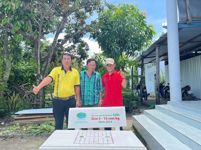 Tôm Giống Gia Hóa Bình Minh xin chúc mừng các hộ nuôi tôm giỏi ở tỉnh Bạc Liêu đã nhận được quà tặng lưu niệm là một bộ bàn ghế đá.