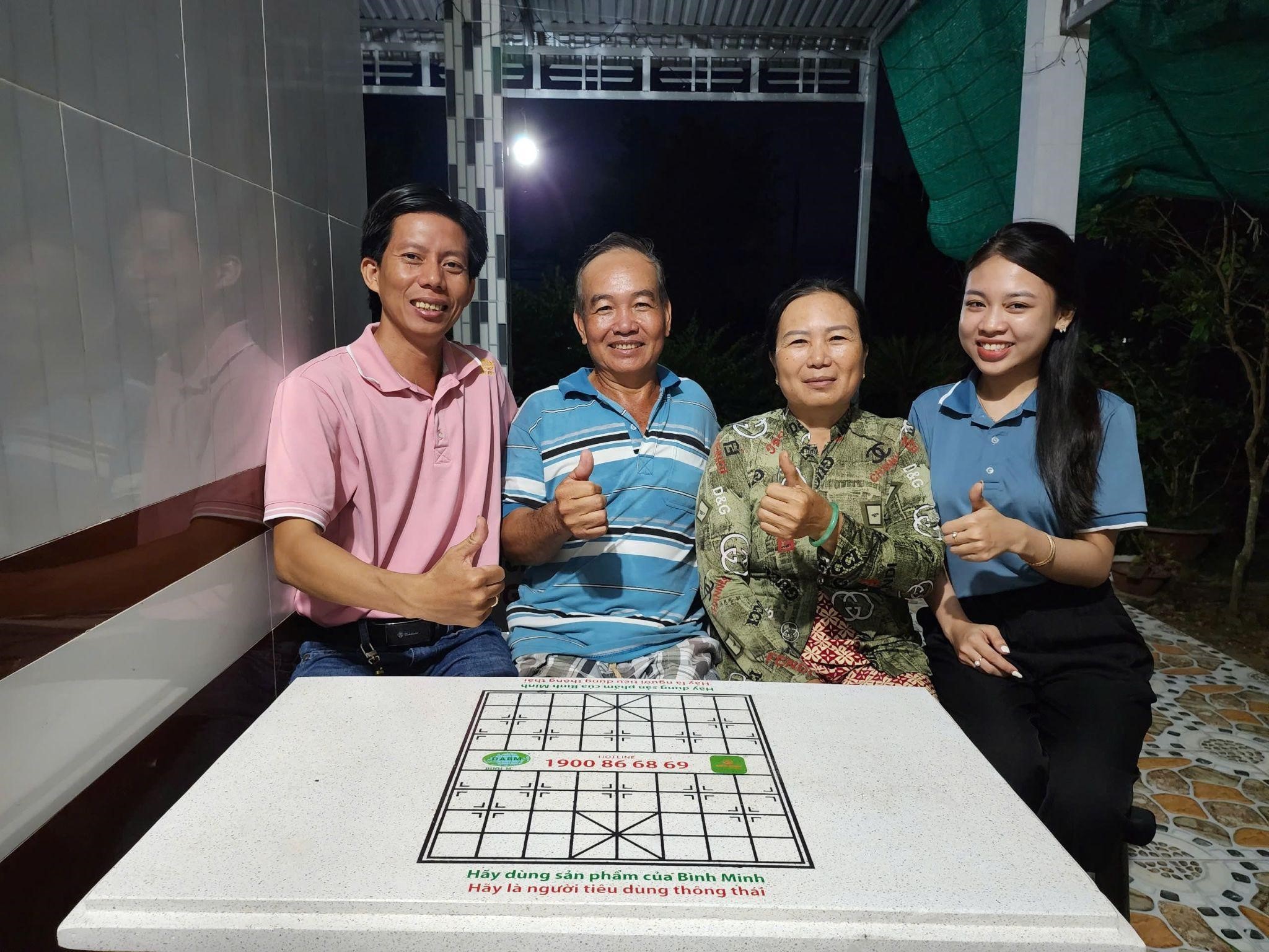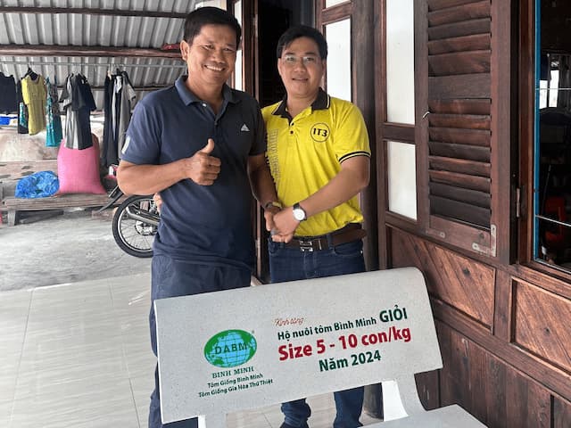 Nhận được tín hiệu tích cực từ phía bà con, Tôm Giống Gia Hóa Bình Minh đã tổ chức những chuyến ghé thăm, trao tặng bộ bàn ghế bằng đá cho các hộ nuôi tôm giỏi đã thực hiện theo đúng quy trình và mang lại hiệu quả ấn tượng. Đồng thời, gửi lời cảm ơn đến bà con vì đã tin tưởng và áp dụng giải pháp nuôi tôm do Công ty cung cấp.