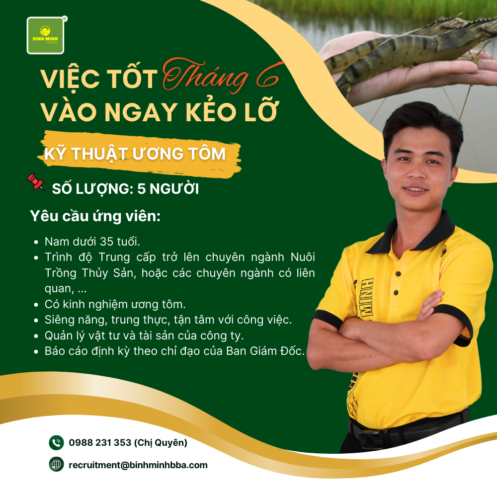 📍Vị trí tuyển dụng: Kỹ thuật ương tôm